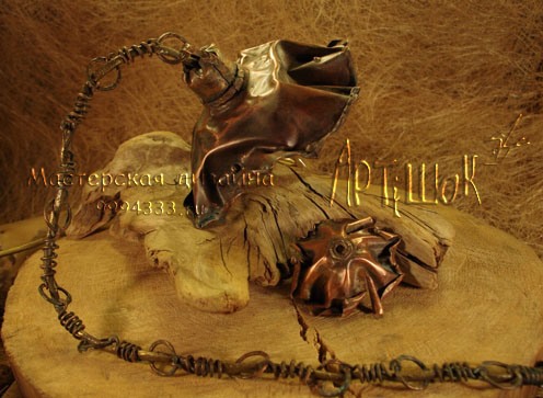 Подсвечник ручной работы. Кованая медь, стекло, химера с Белого моря. Подробнее об изготовлении |