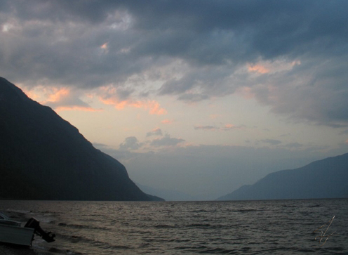 Как выяснилось, много новосибирцев творческих специальностей переезжают в эти края, организуя небольшие сувенирные производства, а некоторые даже галереи. Ночуем в одном из кемпинговых кедровых домиков, а утром скинув катер с вещами и оставив на базе машины, уходим на Телецкое. Горы восхищают, погода радует теплом, озеро прогрелось и зовёт купаться, вода настолько прозрачна, что видны мелкие камушки на очень большой глубине. Хасан, периодически посматривая на время, обеспокоенно говорит, о времени вечернего шторма. Памятуя о Ладожских штормах, надеюсь про себя, что всё обойдется, да и погода вроде не думает портиться.