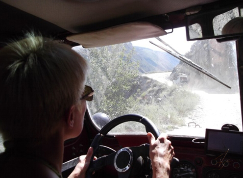 Спускаемся по перевалу Кату-Ярык. Признаюсь, сидеть справа, практически в сорока сантиметрах от обрыва на этом серпантине было не очень комфортно, особенно в моменты сильной раскачки на выбоинах, и факт неуклонно сокращающегося расстояния до низа ущелья нисколько не утешал. Как я выяснила позднее по возвращении (на подъёме на Кату-Ярык), водителю менее страшно – он за руль держится!!! )))