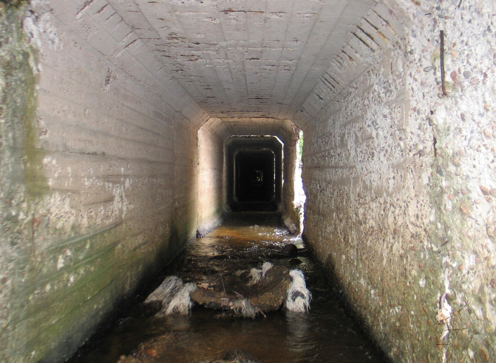 значительные разрушения бетонного туннеля со смещениями внутренних водоводов (те, что идут до моста).