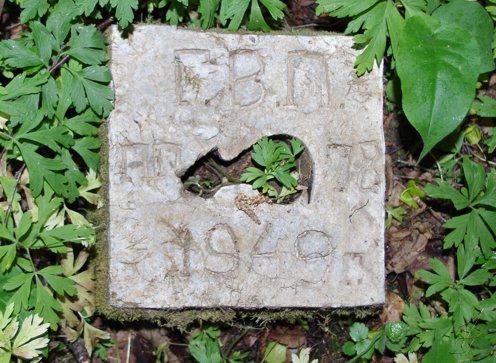 Но пока ещё стоит фрональная стена казармы, а слева от неё по над ручьем военный геодезический знак.